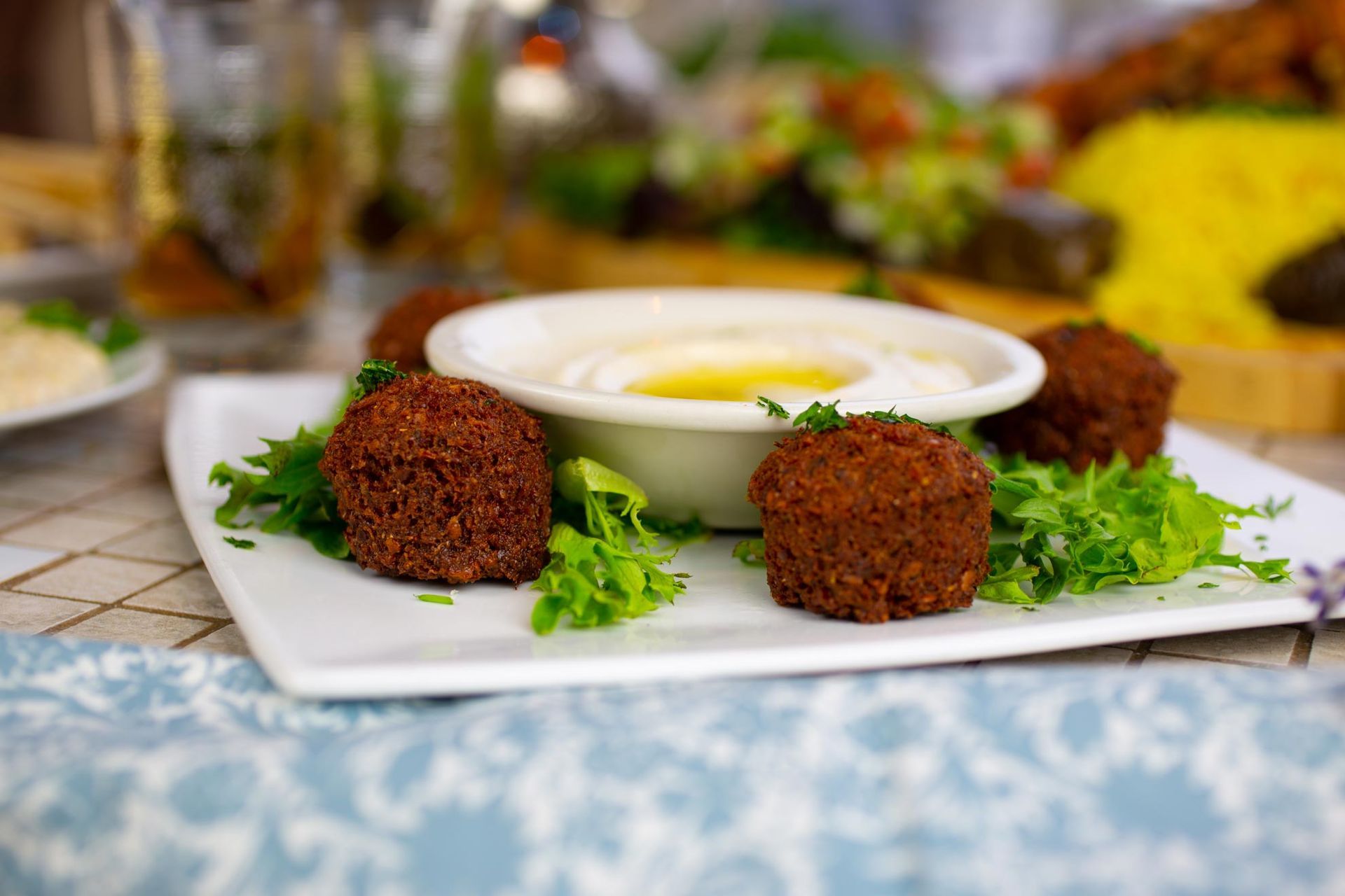 Delicious combination of falafel(3), meat kibbeh(3),