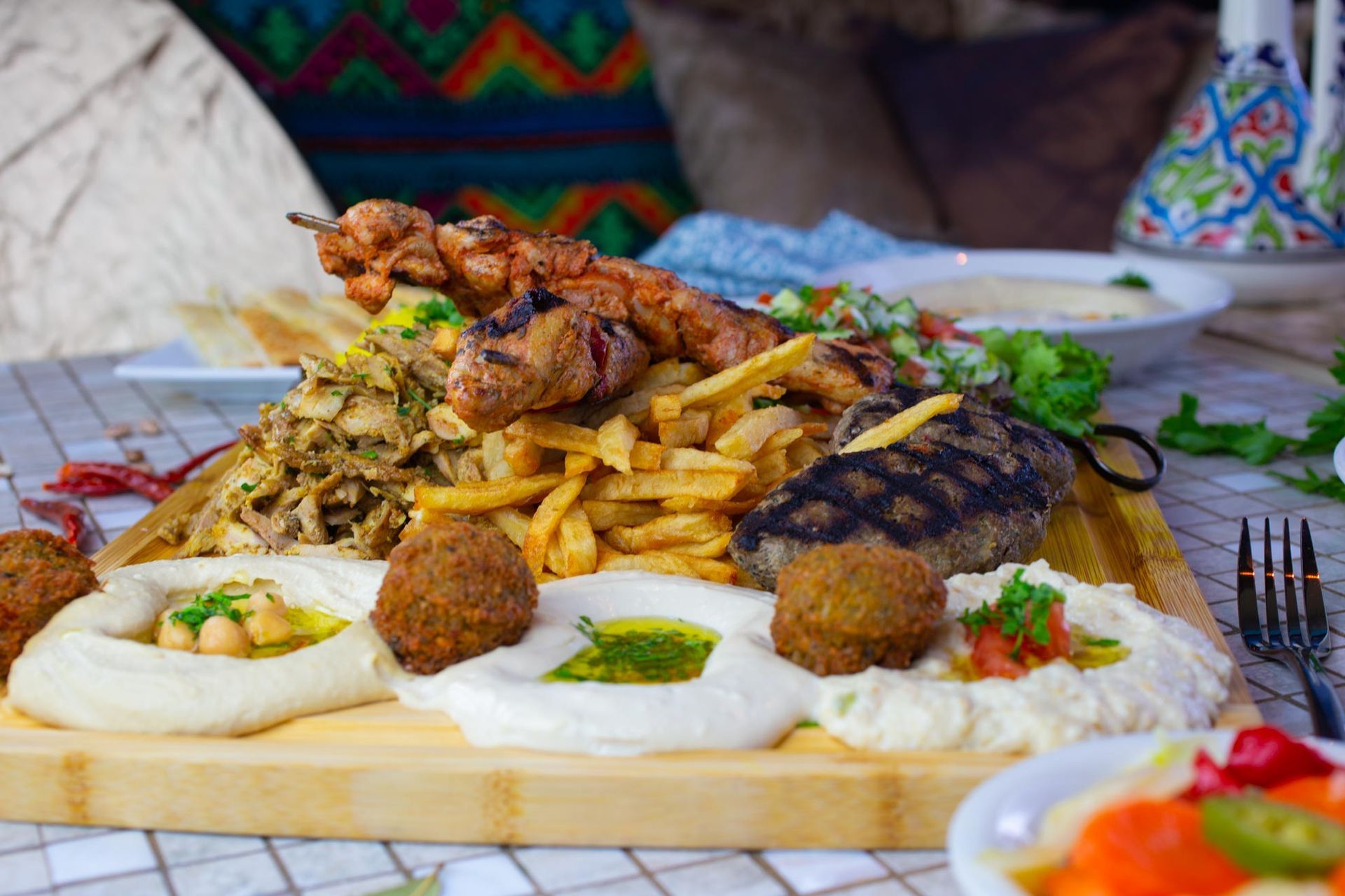 1 Skewer Beef Shashlik, 2 Kebabs,1 Skewer Baby Chicken,1 Skewer Chicken Shish Tawook,